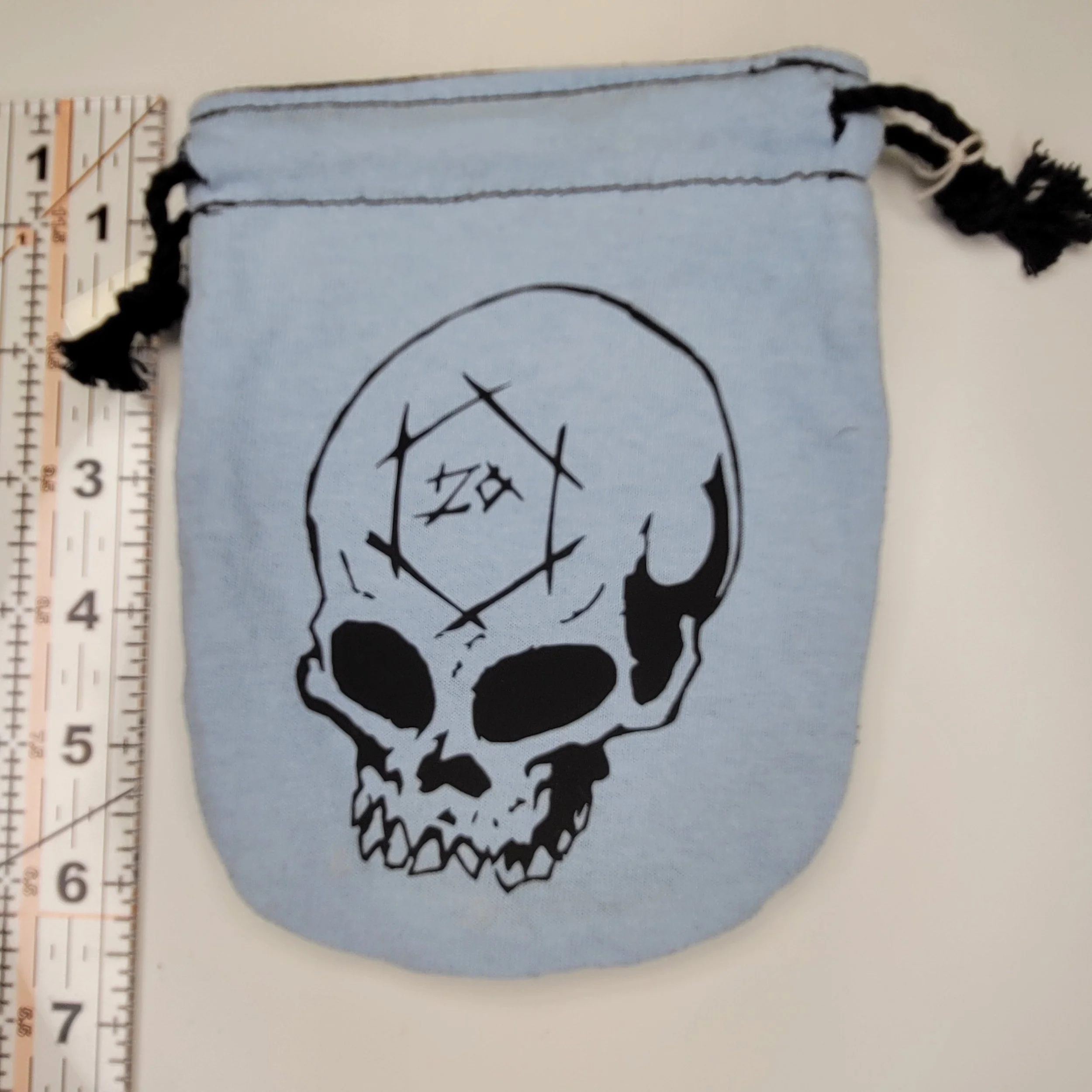 Our drawstring style dice bags keep with our upcycling tradition as well. They are made from an upcycled t-shirt. They are sturdy and simple.
